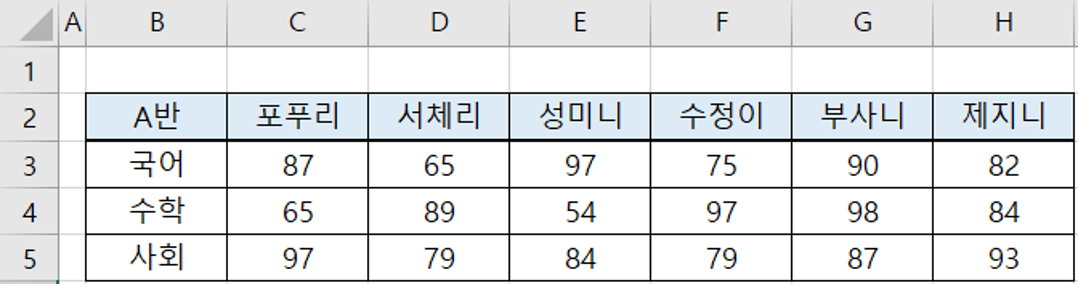 국어 점수가 80점 이상이면서 수학 점수가 80점 이상인 학생의 사회 점수 합계를 구해볼까요??