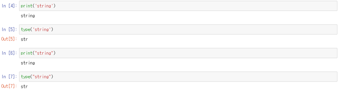 문자열 자료형은 입력할 때 작은 따옴표('')나 큰 따옴표("") 사이에 입력해야 합니다.