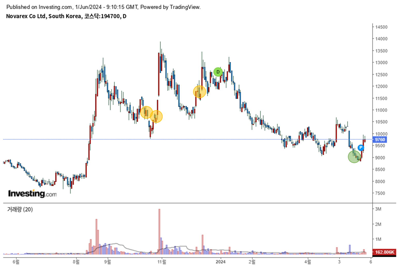 - 노바렉스: 24년 1Q 잔티젠의 원료 수급 불안정으로 수주량을 대응하지 못하면서 내수 매출이 크게 감소. 국내 소비 여력 둔화로 내수 매출 회복이 단기간에 이루어지기 어려울 것으로 전망.
