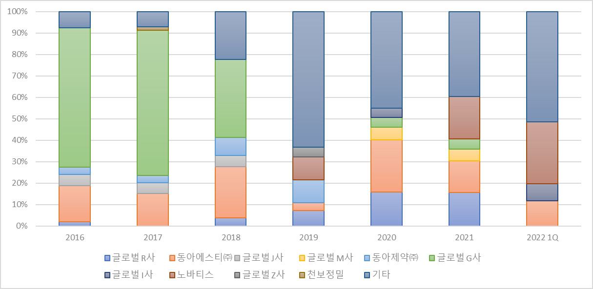 • 고지혈증을 적응증으로 하는 렉비오(인클리시란) 출시 영향으로 노바티스향 매출 비중 크게 증가